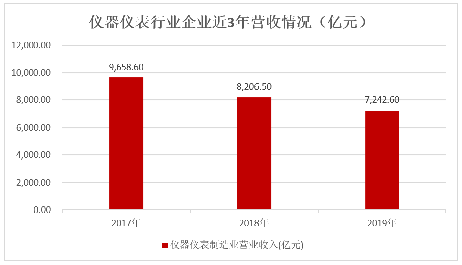 截至2020年6月,全國儀器儀表企業(yè)數(shù)量共計4840家,2019年主營業(yè)務(wù)收入7242億元,其中,儀器儀表行業(yè)上市公司共計38家,合計營收為377億元,占比僅5.22%,這從某種程度上說明,該行業(yè)仍以中小型企業(yè)為主導(dǎo)。此外,從營收過趨勢上來看,儀器儀表行業(yè)近三年來的營收數(shù)據(jù)出現(xiàn)了明顯的下滑趨勢,2017、2018及2019年,儀器儀表行業(yè)整體營收從9658億元,下降到7242億元??梢哉f,整個行業(yè)處在末位淘汰的階段,上下游需求的變化可能對行業(yè)技術(shù)和產(chǎn)品提出了更高的要求,加劇了競爭。