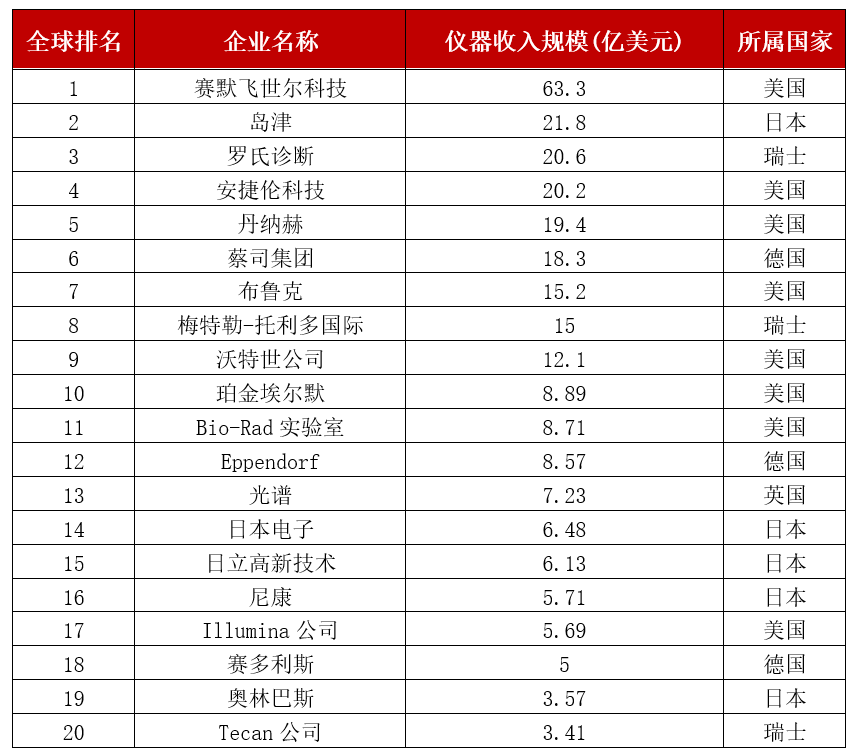 根據(jù)美國化學(xué)會(ACS)旗下的《C&EN》(Chemical & Engineering News)發(fā)布的全球儀器公司榜單,在前20家公司中,有8家是美國公司,7家來自歐洲,5家公司位于日本。中國企業(yè)沒有入選。