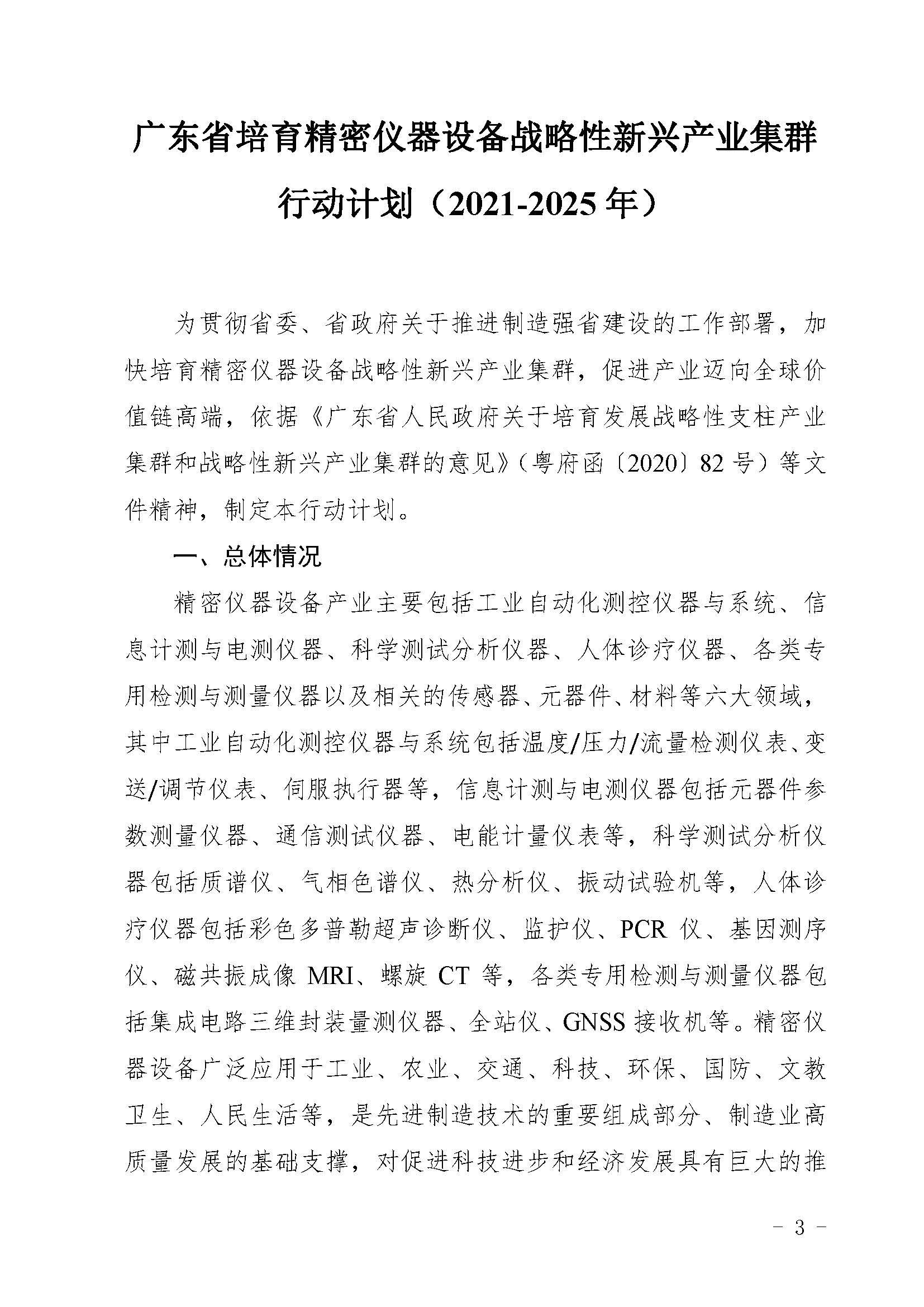 廣東省培育精密儀器設(shè)備戰(zhàn)略性新興產(chǎn)業(yè)集群行動(dòng)計(jì)劃(2021-2025年)