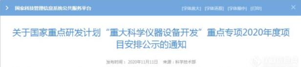 國(guó)家重點(diǎn)研發(fā)計(jì)劃“重大科學(xué)儀器設(shè)備開(kāi)發(fā)”重點(diǎn)專項(xiàng)2020年度擬立項(xiàng)項(xiàng)目公示清單