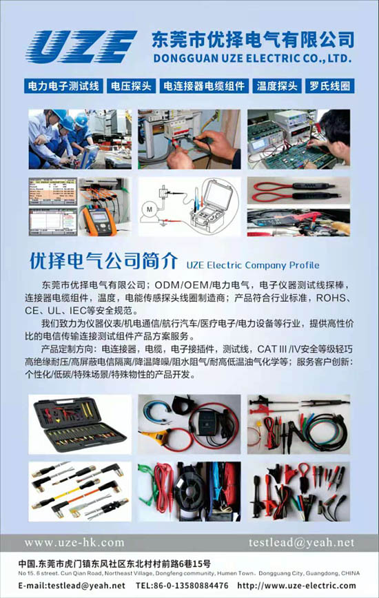 東莞市優(yōu)擇電氣有限公司是ODM/OEM/電力電氣,電子儀器測(cè)試線探棒,連接器電纜組件,溫度,電能傳感探頭線圈的制造商;產(chǎn)品符合行業(yè)標(biāo)準(zhǔn),ROHS、CE、UL、lEC等安全規(guī)范。