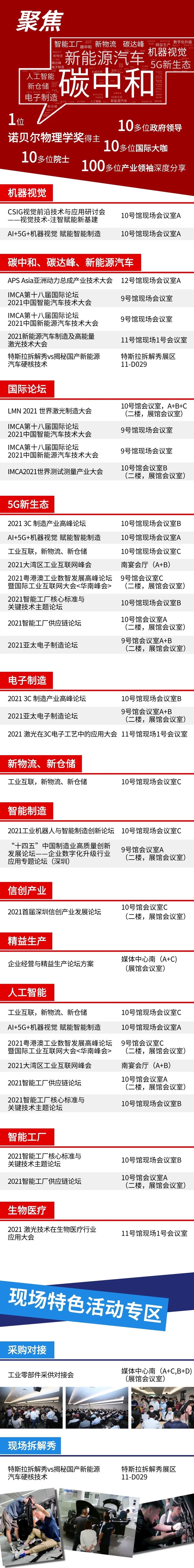 展會同期還將舉辦近30場高峰論壇,屆時將邀請到1位諾貝爾物理學獎得主、10多位院士、10多位政府領導10多位國際大咖、100多位產業(yè)領袖深度分享,聚焦:碳中和、碳達峰、新能源汽車、5G新生態(tài)、電子制造、人工智能、智能工廠、機器視覺、新物流、新倉儲、精益生產、數(shù)字化升級等熱門主題,探討當下形勢,解決技術痛點和難點,共話未來商機!