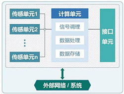 智能傳感器基本結(jié)構(gòu)如下圖所示,一般包含傳感單元、計算單元和接口單元。信號采集由傳感器單元負責,根據(jù)設(shè)定對輸入信號進行處理是計算單元的主要功能,接口單元負責通過網(wǎng)絡(luò)與其他裝置進行通信。
