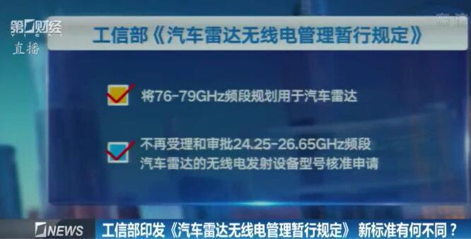 為了引導(dǎo)技術(shù)升級,《規(guī)定》提出,國家無線電管理機(jī)構(gòu)不再受理和審批24.25-26.65GHz頻段車載雷達(dá)無線電發(fā)射設(shè)備型號核準(zhǔn)申請。自2024年1月1日起,停止生產(chǎn)或者進(jìn)口在國內(nèi)銷售的24.25-26.65GHz頻段車載雷達(dá)設(shè)備。
