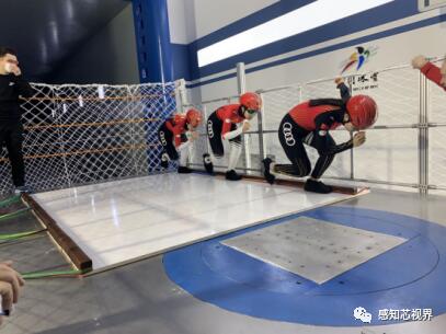 短道速滑隊(duì)員在體育風(fēng)洞開展訓(xùn)練畫面
