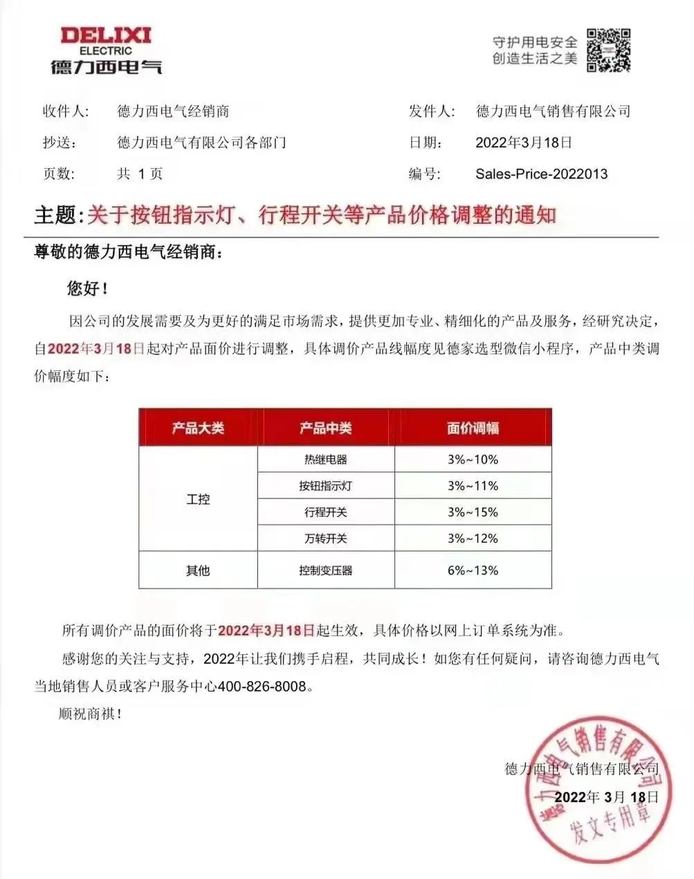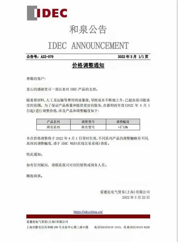 三、和泉電氣:4月起全產(chǎn)品上漲5%~10%