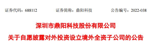 近日,鼎陽科技披露對外投資設(shè)立境外全資子公司。鼎陽科技表示,為完善公司全球市場布局,完善公司全球營銷渠道,提升公司產(chǎn)品的市場競爭力和服務(wù)支持能力,進一步提升公司綜合競爭力,公司使用自有資金1000萬日元在日本投資設(shè)立全資子公司“日本鼎陽科技有限公司”。
