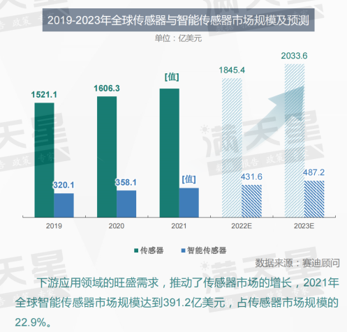 中國電子信息產(chǎn)業(yè)發(fā)展研究院今年8月發(fā)布的《2022年智能傳感器十大園區(qū)報(bào)告》數(shù)據(jù)顯示:2021年全球傳感器市場規(guī)模1710.3億美元,其中智能傳感器391.2億美元;中國傳感器市場規(guī)模2905.2億元,其中智能傳感器1020.4億元。相關(guān)人士表示,新型車用傳感器市場需求今后將以每年10%以上的速度增長。以視覺傳感器代表產(chǎn)品智能攝像機(jī)為例,相關(guān)機(jī)構(gòu)統(tǒng)計(jì)數(shù)據(jù)顯示,從2017年到2022年,國內(nèi)市場出貨量年均增速130%以上,其中車用智能攝像頭是一個(gè)重要板塊。