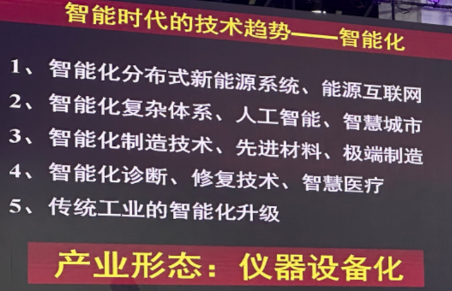 智能化時(shí)代的技術(shù)趨勢(shì)是智能化,包括智能化分布式新能源系統(tǒng),能源互聯(lián)網(wǎng);智能化復(fù)雜體系、人工智能、智慧城市;智能化的制造技術(shù)、先進(jìn)材料、極端制造;智能化的診斷、修復(fù)技術(shù)、智慧醫(yī)療;傳統(tǒng)工業(yè)的智能化升級(jí)。智能化的核心是芯片技術(shù),產(chǎn)業(yè)形態(tài)是儀器設(shè)備化。