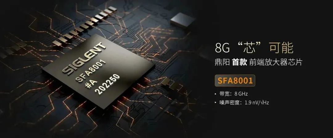 SFA8001作為鼎陽科技第一款自研示波器前端放大器專用芯片,具有8GHz的高帶寬、1.9nV/√Hz的低噪聲密度,能夠幫助示波器觀察速度更快、幅度更小的信號,亦為鼎陽科技8GHz以及后續(xù)更高帶寬示波器的研發(fā)奠定了堅實的基礎(chǔ)。