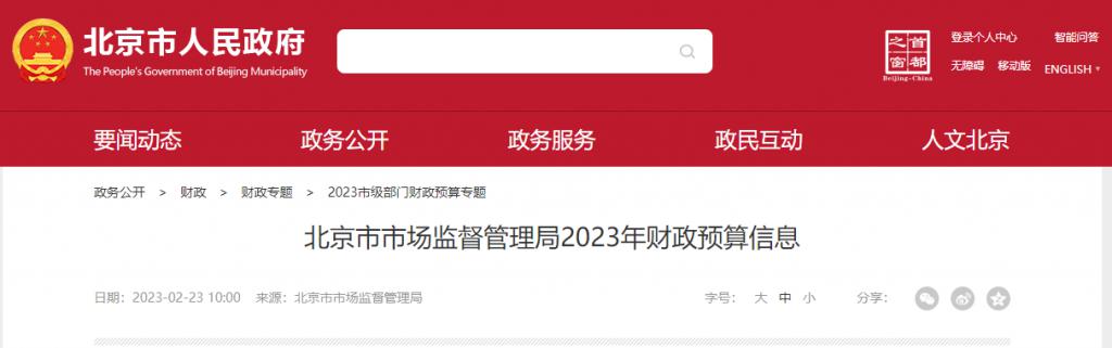 近日,北京市市場(chǎng)監(jiān)督管理局公布2023年財(cái)政預(yù)算信息。