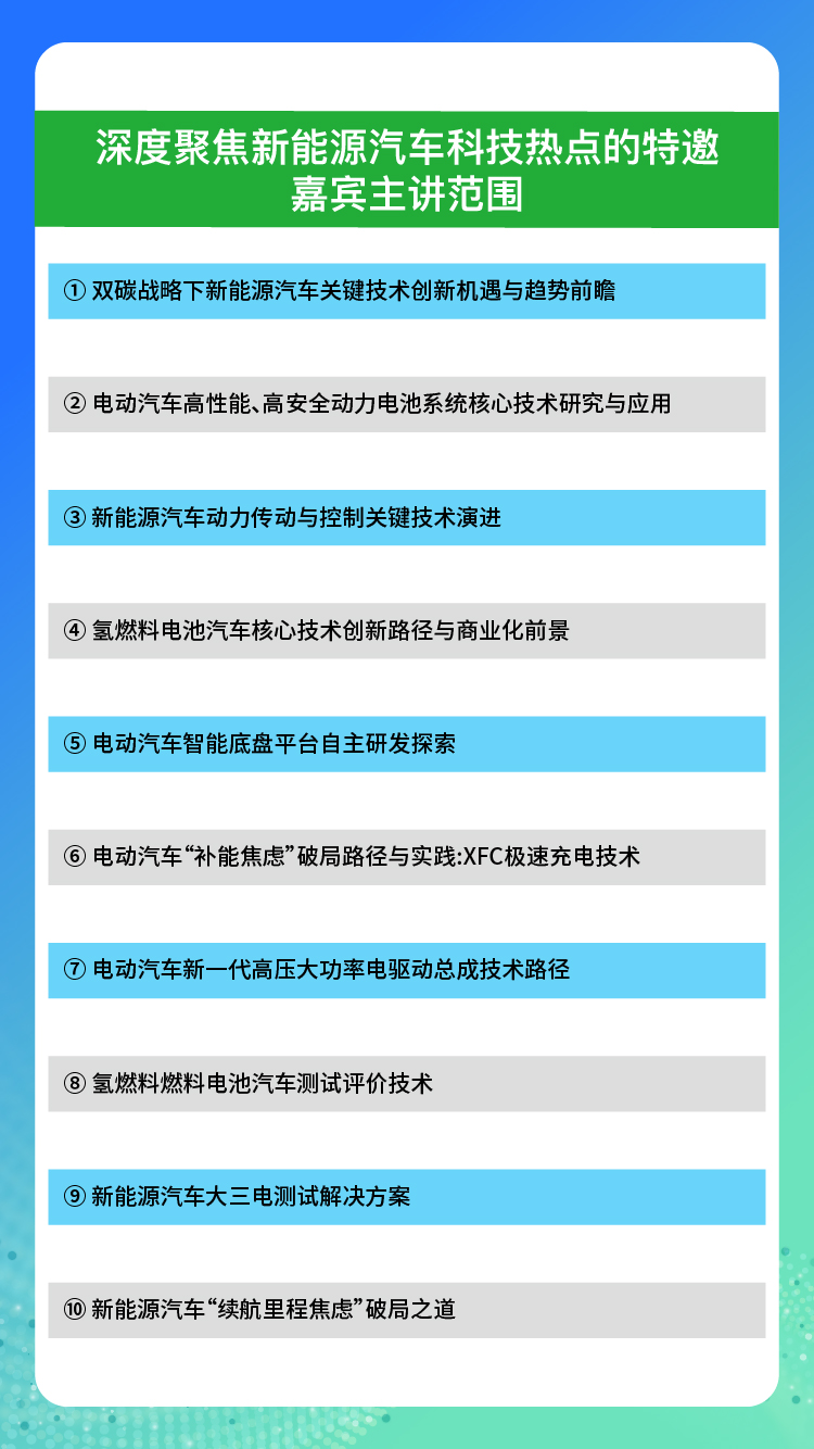 中國新能源汽車技術大會特邀嘉賓主講范圍