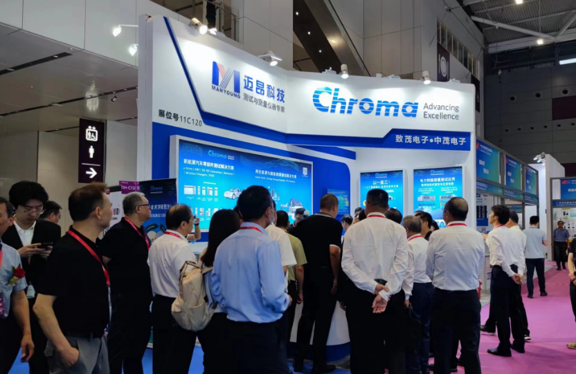 (廣東省政協(xié)副主席 、廣東省精密儀器設備戰(zhàn)略性新興產(chǎn)業(yè)集群“鏈長”袁寶成一行參觀邁昂科技&Chroma中茂電子展位)