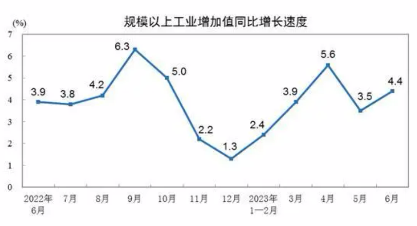 國(guó)家統(tǒng)計(jì)局最新統(tǒng)計(jì)數(shù)據(jù)顯示,上半年,規(guī)模以上工業(yè)增加值同比增長(zhǎng)3.8%(增加值增速均為扣除價(jià)格因素的實(shí)際增長(zhǎng)率)。裝備制造業(yè)增加值增長(zhǎng)6.5%,比全部規(guī)模以上工業(yè)快2.7個(gè)百分點(diǎn)。分經(jīng)濟(jì)類型看,國(guó)有控股企業(yè)增加值同比增長(zhǎng)4.4%;股份制企業(yè)增長(zhǎng)4.4%,外商及港澳臺(tái)商投資企業(yè)增長(zhǎng)0.8%;私營(yíng)企業(yè)增長(zhǎng)1.9%。分產(chǎn)品看,太陽(yáng)能電池、新能源汽車、工業(yè)控制計(jì)算機(jī)及系統(tǒng)產(chǎn)量分別增長(zhǎng)54.5%、35.0%、34.1%。其中,6月份,規(guī)模以上工業(yè)增加值同比增長(zhǎng)4.4%,環(huán)比增長(zhǎng)0.68%。6月份,制造業(yè)采購(gòu)經(jīng)理指數(shù)為49.0%,企業(yè)生產(chǎn)經(jīng)營(yíng)活動(dòng)預(yù)期指數(shù)為53.4%。