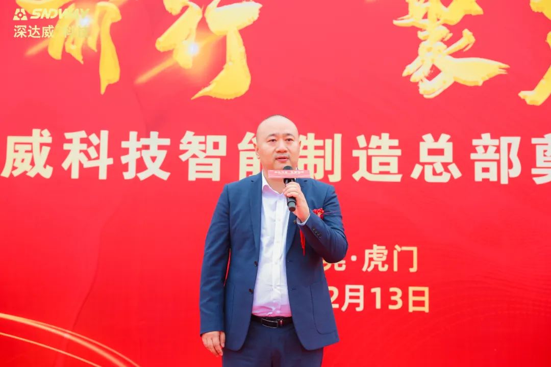 奠基儀式上,深達威科技董事長、總經(jīng)理何剛神采奕奕,躊躇滿志。他在致辭中首先感謝虎門鎮(zhèn)政府的厚愛,在虎門鎮(zhèn)經(jīng)發(fā)局、自然資源局、投促中心、人社局、懷德社區(qū)及大寧社區(qū)的大力支持下,深達威科技智能制造總部項目以高效率高質(zhì)量落地;并特別感謝懷德社區(qū)的大力支持,感謝他們?yōu)轫椖柯涞靥峁┝私煌ū憷?、配套完善的?yōu)質(zhì)地塊。