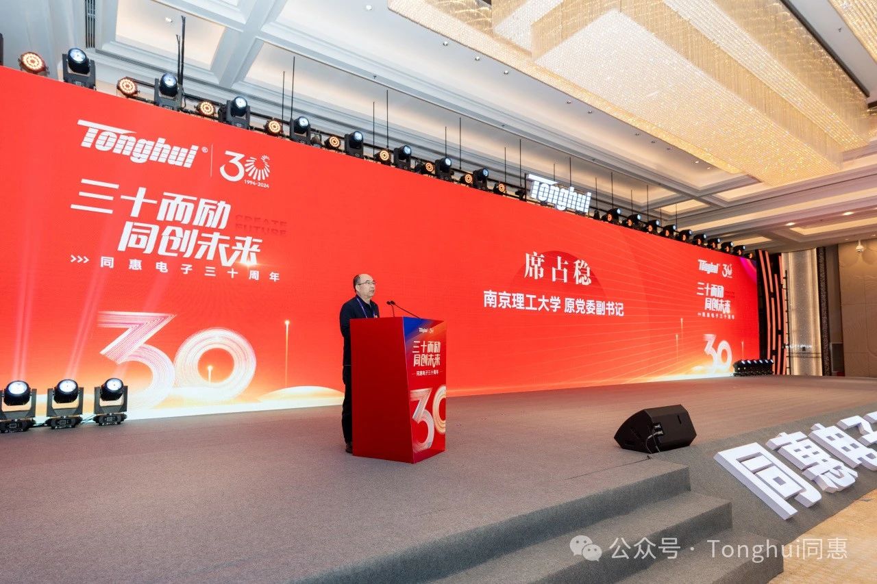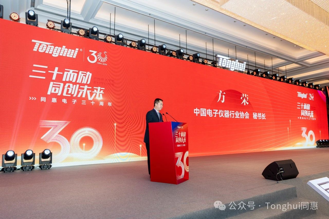 時光荏苒,歲月如梭。2024年4月27日,“三十而勵,同創(chuàng)未來”同惠電子三十周年慶典在龍城常州中吳賓館隆重舉行。公司董事長趙浩華攜創(chuàng)始人團隊和員工代表,與出席盛典的領導嘉賓、高校代表、行業(yè)協(xié)會代表、經(jīng)銷商代表、供應商代表等各界朋友,共同見證了同惠電子30年的成長歷程。三十而立再出發(fā),奮楫揚帆啟新程。