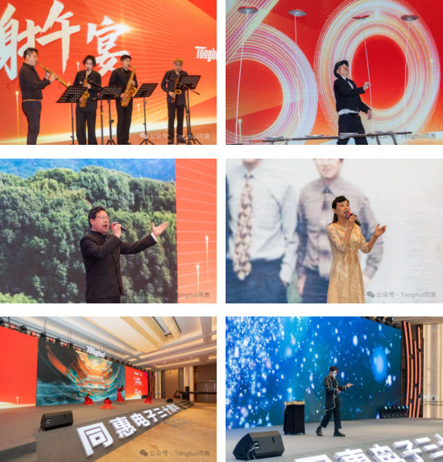 慶典宴會現(xiàn)場,各類精彩文藝節(jié)目輪番上演:薩克斯演奏悠揚動人,歌唱演員歌聲嘹亮悅耳,中國舞舞姿翩躚……精彩演出贏得了與會嘉賓的陣陣掌聲,把宴會氣氛推向了高潮。