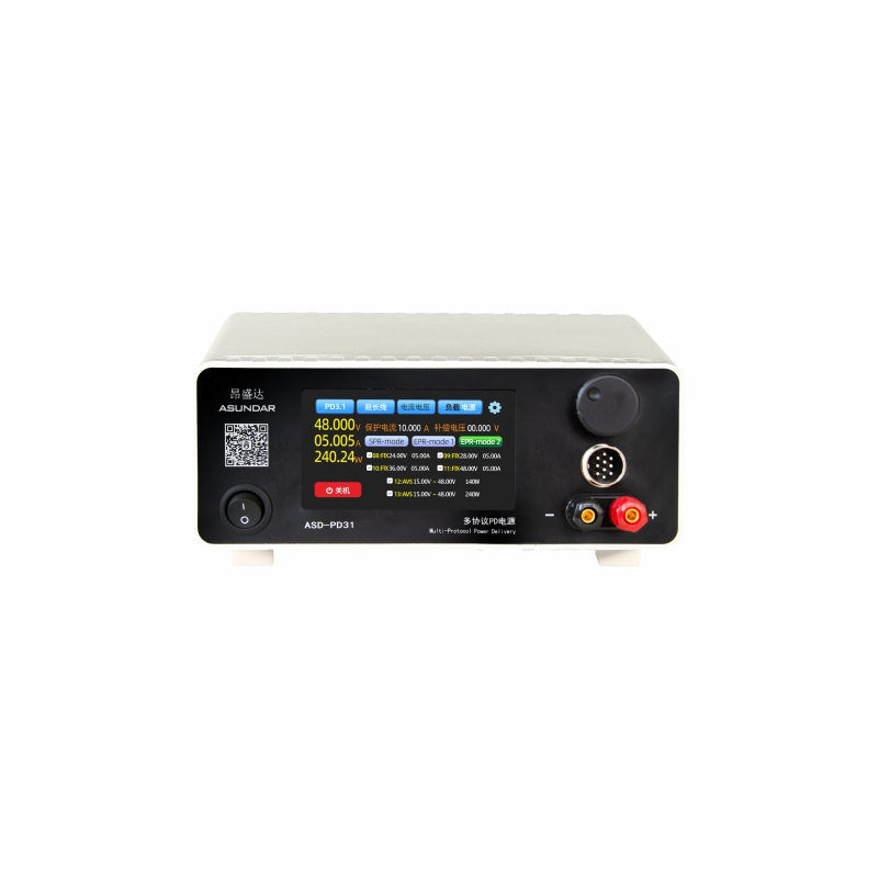 ASD-PD31多協(xié)議PD電源在具備普通負(fù)載儀和普通電源功能的同時(shí)支持QC、PD等多種快充協(xié)議的識(shí)別觸發(fā),主要用于適配器、移動(dòng)電源、車充等外接電源 PCBA和成品的功能檢測、參數(shù)測試及性能評估。其最大供電電壓48V,電流6A,功率240W。最大帶載電壓48V,電流10A,功率240W。亦可作為QC、PD快充電源對外供電,亦可偵測產(chǎn)品快充協(xié)議、電壓及電流范圍,測試產(chǎn)品過流保護(hù)、短路保護(hù)等功能。