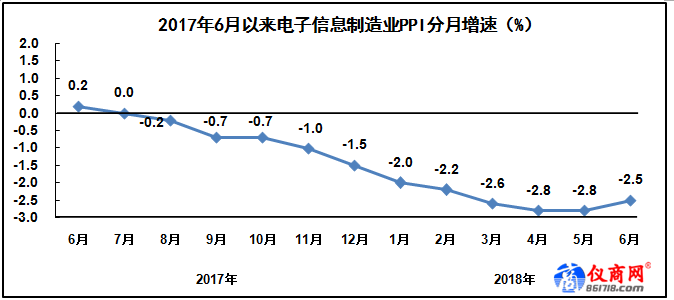 上半年,電子信息制造業(yè)生產(chǎn)者出廠價格同比下降2.5%。6月份,電子信息制造業(yè)生產(chǎn)者出廠價格同比下降2.5%,延續(xù)去年三季度以來的下降趨勢,環(huán)比增長0.1%。