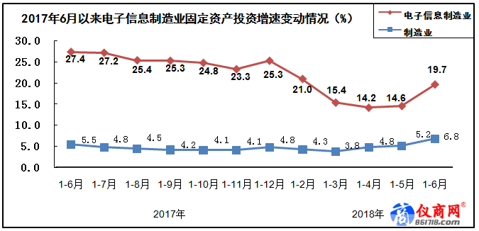 2018年上半年,電子信息制造業(yè)繼續(xù)保持平穩(wěn)增長態(tài)勢,生產(chǎn)和投資增速在工業(yè)各行業(yè)中保持領(lǐng)先水平,產(chǎn)業(yè)運行總體保持穩(wěn)健,為全年產(chǎn)業(yè)持續(xù)健康發(fā)展打下堅實基礎(chǔ)。