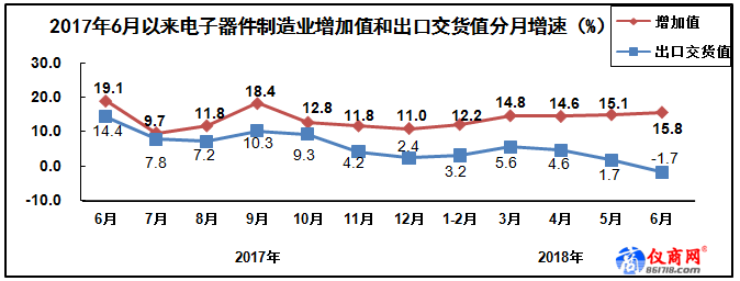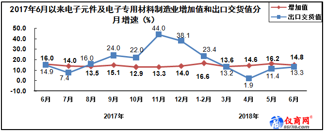 上半年,電子元件及電子專用材料制造業(yè)增加值同比增長15.4%。出口交貨值同比增長10.3%。主要產(chǎn)品中,電子元件產(chǎn)量同比增長21.5%。