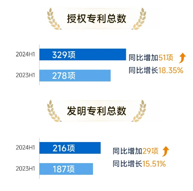 而研發(fā)投入不僅帶來了豐富的新品,也帶來了專利儲備。2024年上半年,鼎陽科技授權(quán)專利總數(shù)達(dá)329項,同比2023年上半年增長51項,其中,發(fā)明專利總數(shù)達(dá)216項,同比2023年上半年增長29項。