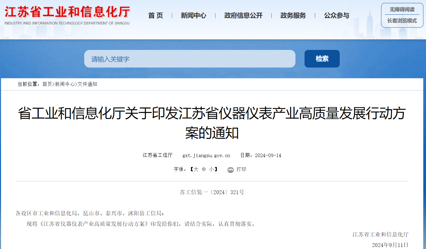 江蘇省儀器儀表產(chǎn)業(yè)高質(zhì)量發(fā)展行動方案