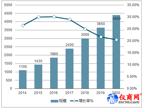 2018-2020年中國(guó)工業(yè)互聯(lián)網(wǎng)市場(chǎng)規(guī)模走勢(shì)預(yù)測(cè)