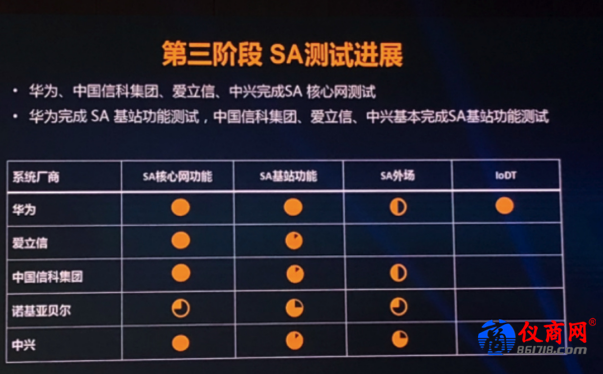 結(jié)果顯示,截至目前,第三階段NSA(非獨立組網(wǎng))測試已全部完成,同時,SA(獨立組網(wǎng))測試也進(jìn)程過半。