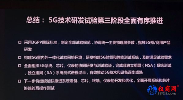 9月28日,IMT-2020(5G)推進(jìn)組在第三屆5G創(chuàng)新發(fā)展高峰論壇上公布中國5G技術(shù)研發(fā)試驗的第三階段最新測試結(jié)果。