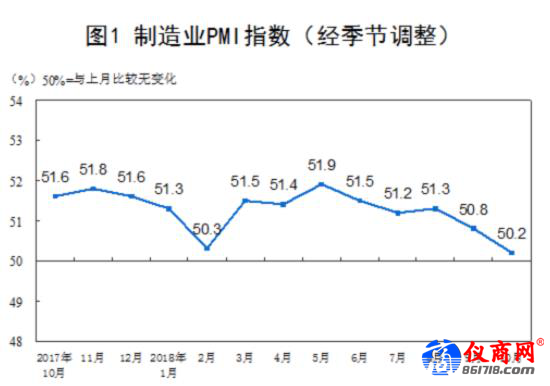 國(guó)家統(tǒng)計(jì)局31日公布數(shù)據(jù)顯示,10月官方制造業(yè)和非制造業(yè)PMI分別為50.2和53.9,環(huán)比雙雙下降。制造業(yè)連續(xù)27個(gè)月高于臨界點(diǎn),總體延續(xù)擴(kuò)張態(tài)勢(shì),但創(chuàng)2016年6月以來(lái)新低。