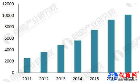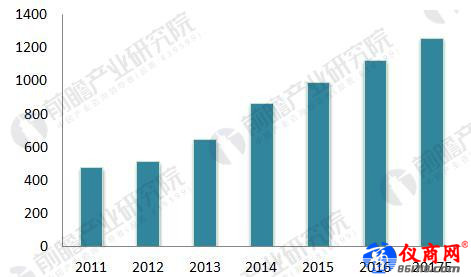近年來,國內(nèi)傳感器市場持續(xù)快速增長,年均增長速度超過20%。2011年,我國傳感器市場規(guī)模為480億元;到2016年,傳感器市場規(guī)模達(dá)到1126億元。