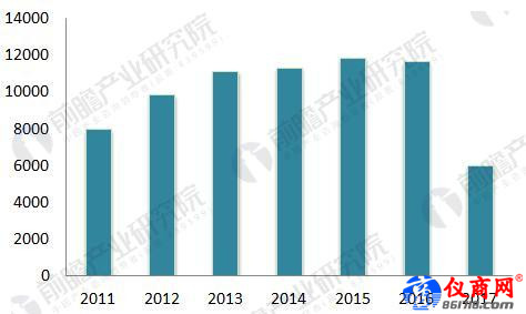 2011-2016年,我國儀器儀表行業(yè)市場規(guī)模實(shí)現(xiàn)了快速擴(kuò)大。2014年行業(yè)銷售收入突破8000億元,達(dá)到8186億元,同比增長6.6%。2016年,我國儀器儀表行業(yè)銷售收入達(dá)到9355億元,同比增長7.5%。