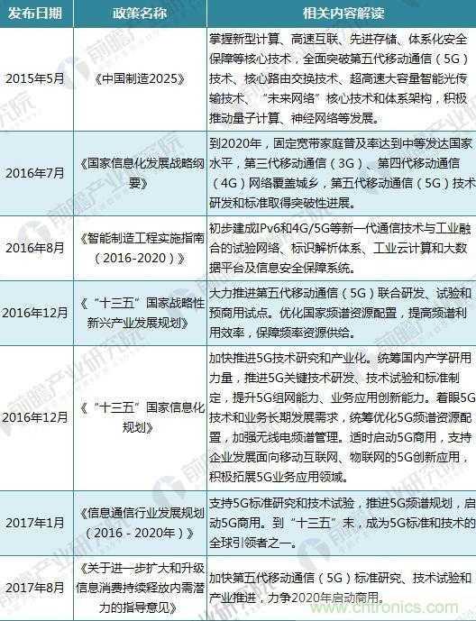 圖表1:截至2018年中國5G產業(yè)相關政策匯總