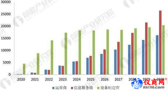 圖表3:2020-2030年中國5G直接經(jīng)濟產出結構(單位:億元)