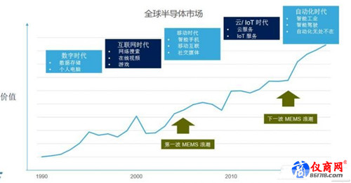物聯(lián)網(wǎng)、智能硬件、汽車電子、工業(yè)4.0等的發(fā)展,給傳感器帶來了巨大的市場機遇,同時也對傳感器要求越來越高:更小型化、智能化、低功耗、高集成度、可大批量產(chǎn)及低成本等等,而MEMS傳感器便能解決這一市場需求,碎片化的市場需求,讓MEMS傳感器變成傳感器發(fā)展的新機遇,MEMS傳感器將成為物聯(lián)網(wǎng)和信息時代的重要技術(shù)。