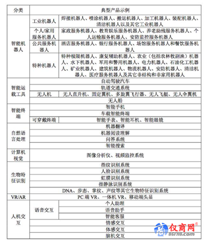 智能產(chǎn)品是指將人工智能領(lǐng)域的技術(shù)成果集成化、產(chǎn)品化,具體的分類如下表所示