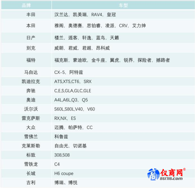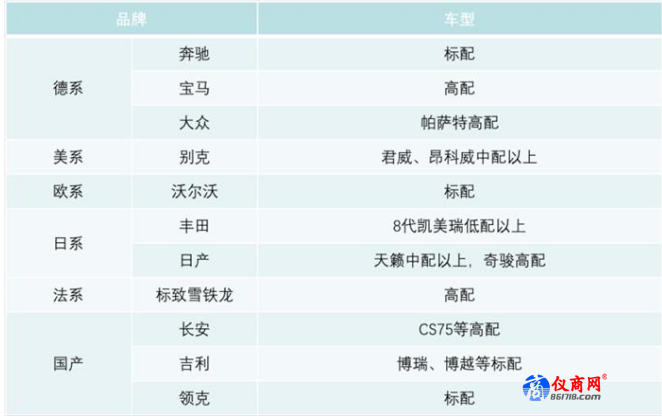 在國(guó)內(nèi)的新車型中,據(jù)英飛凌統(tǒng)計(jì),以下車型已經(jīng)裝配了BSD功能。