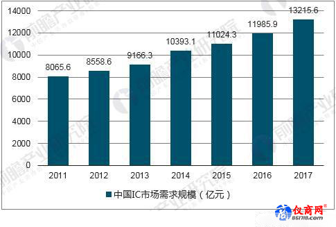據(jù)前瞻產(chǎn)業(yè)研究院發(fā)布的《中國集成電路行業(yè)市場(chǎng)需求預(yù)測(cè)與投資戰(zhàn)略規(guī)劃分析報(bào)告》數(shù)據(jù)顯示,2000年我國集成電路市場(chǎng)消費(fèi)規(guī)模僅為945億元人民幣,到2017年已突破1.3萬億,占當(dāng)年全球半導(dǎo)體產(chǎn)量的50%以上。