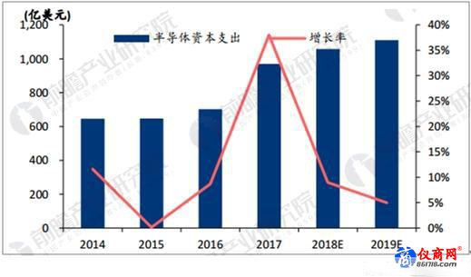 2017年全球半導(dǎo)體資本支出為970億美金,創(chuàng)過去5年新高。預(yù)計(jì),18、19年全球半導(dǎo)體資本支出將分別增長 9.0%和5.0%,資本支出金額分別為1057.3億美元和1110億美元。全球半導(dǎo)體的資本支出仍將不斷增長,這也是行業(yè)進(jìn)入門檻高的體現(xiàn),民間資本往往并不青睞于投資這樣的領(lǐng)域,需要政府牽頭帶動(dòng)。