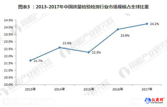 2017年,美國質(zhì)量檢測規(guī)模占據(jù)首位,占市場規(guī)模的35%;德國位居第二,占市場規(guī)模的25%;中國位居第三位,略低于德國,為24%。