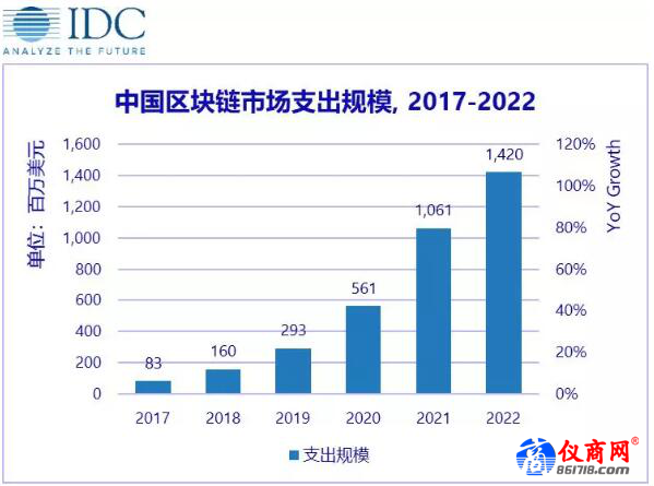 另一方面,很多企業(yè)已經(jīng)認(rèn)識(shí)到了區(qū)塊鏈的潛力,計(jì)劃在未來增加預(yù)算,受此影響,中國(guó)區(qū)塊鏈?zhǔn)袌?chǎng)將迎來快速增長(zhǎng),2022年的市場(chǎng)支出規(guī)模預(yù)計(jì)達(dá)到14.2億美元,2017–2022年的年均復(fù)合增長(zhǎng)率為76.3%。