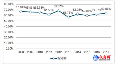 2008-2017年上市公司北斗終端業(yè)務(wù)毛利率