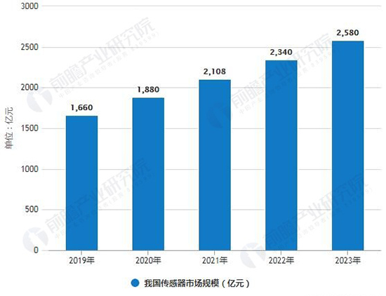 根據(jù)相關(guān)機構(gòu)預(yù)測:預(yù)測2019年我國傳感器市場規(guī)模將達1660億元左右。2021年我國傳感器市場規(guī)模突破2000億元,并預(yù)測在2023年我國傳感器市場規(guī)模增長至2580億元左右,2019-2023年均復(fù)合增長率約為11.65%。
