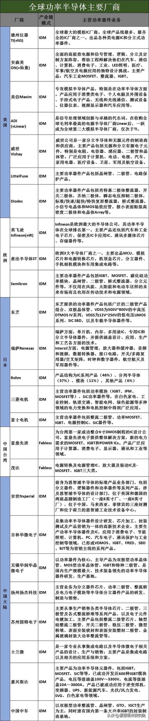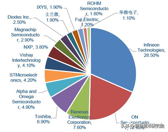 - Si基IGBT:新能源汽車(chē)與發(fā)電占據(jù)70%產(chǎn)品需求,帶動(dòng)每年超40億美元市場(chǎng)。IGBT集BJT與MOSFET優(yōu)點(diǎn)于一身,應(yīng)用拓展至新能源汽車(chē)、新能源發(fā)電、軌道交通等領(lǐng)域。國(guó)際龍頭英飛凌、三菱電機(jī)等CR4達(dá)70.8%,行業(yè)集中度高并且海外廠商優(yōu)勢(shì)明顯。國(guó)內(nèi)廠商方面,中國(guó)中車(chē)立足于動(dòng)車(chē)用IGBT,產(chǎn)線滿產(chǎn)后將具備年產(chǎn)12萬(wàn)片8英寸IGBT芯片和100萬(wàn)只IGBT模塊能力。嘉興斯達(dá)已開(kāi)發(fā)近600種IGBT模塊產(chǎn)品,實(shí)現(xiàn)產(chǎn)業(yè)化。