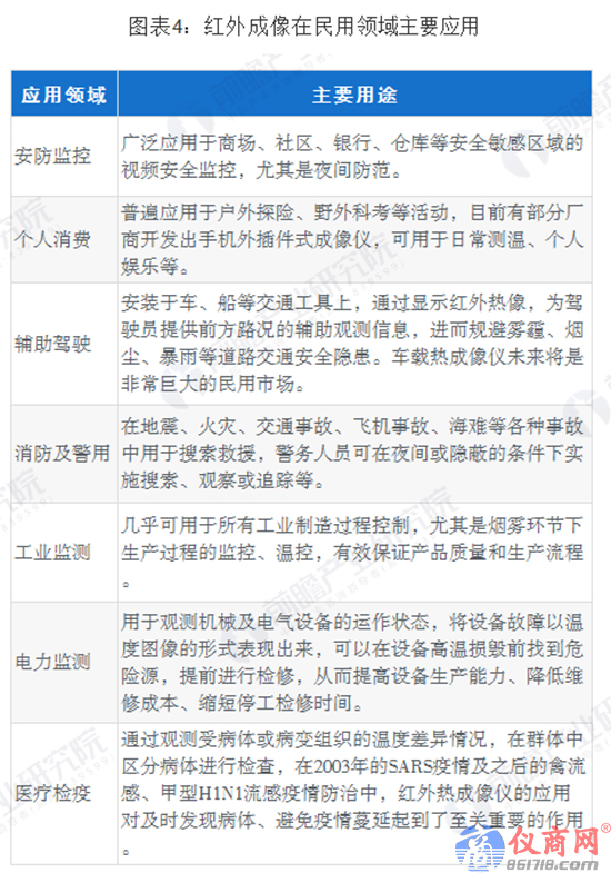 隨著紅外成像產(chǎn)品的成本及價格不斷下降,其在民用領(lǐng)域的應(yīng)用更加廣泛。