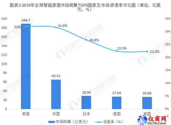 而在市場(chǎng)滲透率方面,我國(guó)智能家居市場(chǎng)滲透率低,市場(chǎng)空間廣闊。《2018中國(guó)智能家居產(chǎn)業(yè)發(fā)展白皮書(shū)》顯示,2018年我國(guó)智能家居市場(chǎng)滲透率為4.9%,而同期美國(guó)智能家居市場(chǎng)規(guī)模達(dá)到188.7億美元,滲透率達(dá)到32.0%,國(guó)內(nèi)滲透率的提升將為智能家居市場(chǎng)規(guī)模增長(zhǎng)提供強(qiáng)勁動(dòng)能。