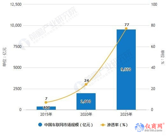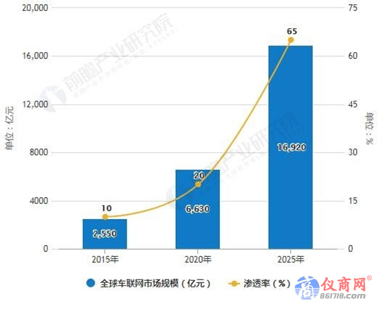 2015-2025年全球與中國車聯(lián)網(wǎng)市場規(guī)模及滲透率統(tǒng)計情況