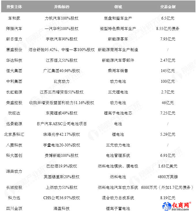 2018年中國新能源汽車行業(yè)兼并重組事件匯總情況