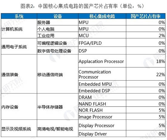 遺憾的是,在集成電路下游應用領(lǐng)域,目前國產(chǎn)芯片市場占有率極低。如在工業(yè)應用領(lǐng)域,核心集成電路國產(chǎn)芯片占有率僅為2%;而在服務(wù)器領(lǐng)域,幾乎全是國外芯片的市場。